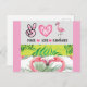 A cualquier fanático rosa del flamingo le encantaría recibir esta hermosa postal tropical de paz, amor y flamencos.