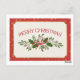 Postal Cute Vintage Red & Green Merry Christmas Postcard