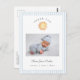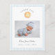 Cute watercolor sun baby boy Thank you Birth announcement postcard with photo and birth stats with Blue and white pin stripe border.