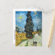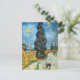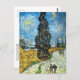 Postal de arte fino con Cypress Against a Starry Sky (1890), de Vincent Van Gogh (1853-1890). Un pintor holandés post-impresionista. Una pareja camina por un camino con un ciprés y campos de trigo en el fondo contra un cielo azul.