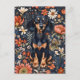 Postal Dachshund Adorable Rodeado De Flores Vivas