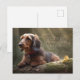 Presentamos nuestra encantadora postal con una adorable imagen de IA de un dachshund con cabellera encajonada entre los árboles en un ambiente sereno. Este bonito diseño hará feliz a cualquier amante del dachshund. La postal se ve acentuada por el eslogan "La vida es mejor con un Dachshund Caballo a tu lado", un sentimiento con el que cualquier orgulloso propietario del dachshund puede identificarse.
