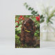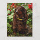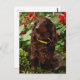 Postal Dachshund Marrón Sentado En El Jardín Con Flor