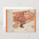 Esbozo coloreado vintage c1904 del artista sueco Carl Larsson. Niña pequeña con vestido naranja mira hacia abajo a una corona de papel y tijeras.