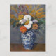 Postal con el cuadro de la vida del artista Post-impresionista francés Paul Cézanne (1839-1906), Dahlias in a Delft Vase (1873). Una exquisita representación artística con un jarrón de porcelana azul y blanco adornado con flores de dalia naranja y blanca