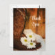 Personalizar de los encantadores White Daisies y Cowboy Boots Boda de países occidentales Gracias Postcard con su propio mensaje personal de agradecimiento, gratitud y aprecio. Este rústico tema de rancho personalizado de moda, gracias a la postal, presenta una pintoresca fotografía floral realzada digitalmente de botas de vaquero marrón, flores de margarita blanca, velo nupcial blanco y madera de grano marrón.