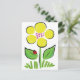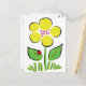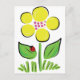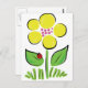 Una margarita estilizada en flor, se eleva sobre unas pocas hojas de pasto. Una mariquita roja se sienta en una de las hojas de la flor.