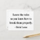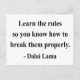 "Aprende las reglas para que sepas cómo romperlas adecuadamente" - Dalai Lama