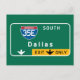 Una señal original de la carretera americana desde la ciudad de Dallas, Texas.