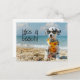 Un cachorro dálmata con gafas de sol en la playa. Una postal divertida. El mensaje "¡La vida es una playa!" puede ser eliminado o reemplazado por su propio mensaje.