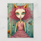 Postal Dama Adorable Con Oídos De Gato Collage De Medios