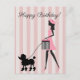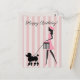 Postal Dama antigua paseando caniche negro Feliz Cumpleañ