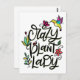 ©2019 copyright Dio Pérez, PaisleyInParis.com Design presenta ilustraciones de plantas, un pájaro que rebosa y texto con letras a mano que dice: "Ladrón de plantas locos". Esta postal es una gran herramienta de marketing si usted está en el negocio de la venta y el cuidado de los arreglos de plantas. Dáselos a sus clientes con una nota escrita a mano, o envíenles una postal de "The Crazy Plant Lady" recordándoles que tienen nuevas flores para que las vean.