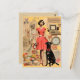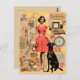 Postal Dama retro vestida con el perro negro Collage