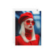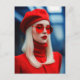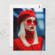 Dama rubia con boina de traje de salto rojo y sombras rojas Gafas de sol