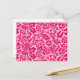 Postcard en un patrón vintage de damasco floral William Morris, realzado digitalmente y coloreado, en rosa fucsia profunda sobre fondo rosa pastel