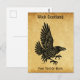 A simple silhouette-like image of a lively raven (Corvus corax, done in Norse/Celtic style, superimposed on an old paper background image, giving it a mediaeval feel. Customisable text reading "Wick Scotland" appears at the top. You may further customise by adding additional text at the bottom.