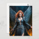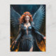 dark angel queen in a black and gold gown, adorned with a golden crown and black wings, standing in a candlelit gothic hall.