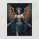 majestic dark angel queen with striking red wings, adorned with a golden crown and wearing a black and gold dress, exuding power and mystery.