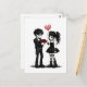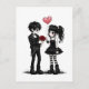 A darkly cute Valentine’s postcard for lovers of all things gothic. This design features an adorable goth couple dressed in black, holding a heart balloon and blood-red roses.
