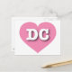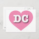 Esta postal tiene un vibrante corazón rosado que contiene las letras negrita blanca superior del funda DC, la abreviatura oficial del Distrito de Columbia. El lado inverso de la postal en blanco, a la espera de tus sentimientos escritos a mano o texto personalizado.