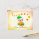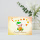 Hermosas hojas de otoño coloridas y adorables elfos sosteniendo una tarjeta postal de saludo de Acción de Gracias con calabaza. Todo el texto se puede personalizar.