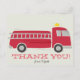 Esta postal de agradecimiento fue diseñada dentro de un juego de fiestas con temática de bomberos, pero también puede funcionar bien por sí sola.