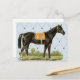 Caballo negro guapo con ilustracion vintage a todo color sobre fondo azul claro