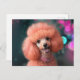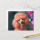 Esta tarjeta postal de perro ultra-linda es lo perfecto para enviarle a un amante del perro. Con una representación realista de un alegre caniche rosa con un fondo de bokeh colorido, esta postal le dará un toque de alegría al día de alguien.