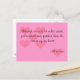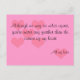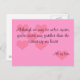 Cuando estés lejos de la persona a la que amas, envíales esta tarjeta para recordarles lo mucho que te las pierdes y las amas. El frente es un fondo rosa con oídos rosados más oscuros y dice "Aunque podemos estar a kilómetros de distancia, nunca estás más lejos que la esquina de mi corazón". Debajo dice "Todo mi amor".