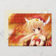 Esta maravillosa postal de otoño tiene un chica de anime sosteniendo una hoja de arce sobre ella. Es uno de un grupo variado de postales de anime acuardeables de Superkalifragilistic.