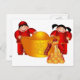 2013 Feliz Año Nuevo Chino con Chica, niño, bar de oro y serpiente dorada sosteniendo un cartel o pergamino deseando gran fortuna, riqueza y prosperidad Ilustracion festivo y dibujo postal