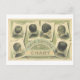 Esta postal es una reproducción de un gráfico de corte de pelo de litografía vintage que muestra diferentes peinados para hombres.