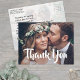 Expresar gratitud a los invitados bodas y compartir dos fotos de su día alegre con elegantes fotos de personalizados gracias a las postales. Toda la redacción de esta plantilla es sencilla para el personalizar. Si prefiere escribir a mano su mensaje, simplemente elimine el texto del ejemplo. El diseño en blanco y negro incluye 2 fotos de su elección, con caligrafía moderna y elegante y tipografía con escritura a mano con letras. Esta elegante tarjeta de agradecimiento es una manera elegante de agradecer a amigos y familiares por celebrar su día especial. ¡Felicitaciones a la novia y al Groom!