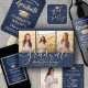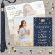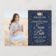 Anunciar la alegre noticia de una próxima fiesta de graduación con 2 fotos modernas salve las invitaciones de postales de fecha. La redacción de esta plantilla es sencilla de personalizar con el nombre del graduado, el año de clase y otros detalles de invitación. Los colores, estilos de fuente y opacidad de superposición se pueden personalizar fácilmente con la herramienta Editor de diseño de Zazzle. El diseño azul marino y dorado incluye una capa de mortero simple, un moderno borde de confeti, una elegante tipografía vintage, una elegante caligrafía clásica de escritura y dos fotos de tu elección, como imágenes de la ceremonia de graduación o de la ceremonia de graduación. Tenga en cuenta que el oro es color impreso, no Relieve metalizado metálico o purpurina. Estas graduaciones ahorran las tarjetas de fecha son una manera elegante de compartir una celebración especial del día con la familia y amigos. ¡Felicitaciones al graduado!