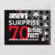 70 cumpleaños sorpresa Guarde la fecha Diagonal NEGRO ROJO BLANCO W71 con estrellas Grunge . Aquí hay un diseño diagonal de guardar la fecha de moda con letras divertidas para una fiesta de cumpleaños SORPRESA. ¡Moderno y elegante! Todo el texto es totalmente personalizable, por lo que también es adecuado para un cumpleaños de 70, 71, 72, 73, 74, 75, 76, 77, 78, 79 años, o cualquier otro año que necesite.
