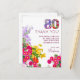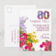 80 años floral moderna Invitación fiesta 80 años postales. Celebre un cumpleaños histórico con esta tarjeta de agradecimiento de 80 cumpleaños diseñada con gusto, con vibrantes acentos florales y un elegante gráfico de "80". Esta tarjeta ofrece una manera sincera de expresar gratitud a amigos y familiares por su presencia y generosos regalos en esta ocasión especial. El personalizable aporta un toque personal. Ideal para los que quieren una manera memorable y elegante de decir "gracias" después de una celebración de cumpleaños número 80. ¡Disfrútalo!