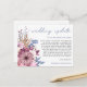 Cuando las circunstancias desafortunadamente significan que necesitas posponer tu boda, esta práctica postal te permitirá informar a tus invitados. Wedding Update está escrito en una elegante letra cursiva en azul polvoriento en la parte superior y el resto del texto en la parte delantera y trasera que puedes personalizar fácilmente. Florales modernos rosados y lilas y follaje azul están en el lado izquierdo de las palabras alineadas a la derecha, y un motivo floral coordinado también está en la parte trasera.