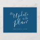 Actualización del plan tarjeta de cancelación de boda es parte del conjunto de boda simple tipográfico corazón azul marino y blanco a juego. Ideal para usar como tarjeta de información de boda para informar a sus invitados de una boda o cancelación de evento, o reprogramar debido a enfermedad o circunstancias imprevistas. Otras opciones de color están disponibles. Diseño original de Sarah Trett para www.mylittleedenweddings.com en Zazzle.