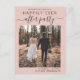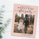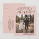 El rosa negro moderno salva la postal de la fecha de su post-salida o pequeña recepción de boda o fiesta con su foto y "Salven la fecha para nuestra feliz eternidad después del Fiesta" en una mezcla de tipografía simple y un guión moderno con intercambios. Añade tus nombres y la fecha y ubicación de recepción/fiesta. En el reverso puede proporcionar más detalles.