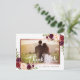 Tarjeta de agradecimiento de boda con foto personalizada con flores de acuarela en color burdeos con fuente de letra manuscrita. Sus invitados amarán esta elegante tarjeta de agradecimiento de boda con estilo chic vintage con acentos de acuarela floral en marsala, burdeos y rosa claro, fuente de letra manuscrita blanca y un marco de foto de falso foil en color dorado rosa para mostrar su perfecta foto de boda para enviar a familiares y amigos como un memorable agradecimiento y recordatorio de su día especial. Agregue su propia foto de boda, nombres y su mensaje de agradecimiento personalizado.