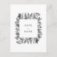 Con ilustraciones de acuarela monocroma, esta tarjeta de invitación botánica exuberante es perfecta para una fiesta en el jardín.