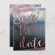Postal De Anuncios Ahorra la Fecha Acuarela Moderna Azul y Rosa Dorad