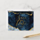 Postal De Anuncios Ahorra la fecha de mármol azul marino con lámina d