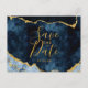 Ahorra la fecha de mármol de acuarela azul marino y lámina dorada con diseño de geoda dorada, con fuentes modernas y de escritura. ¡Tarjetas postales de ahorro de fecha de boda modernas y chic! ~ ¡Consulta mi tienda para ver todo el conjunto de boda para este diseño!