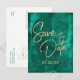 Postal De Anuncios Ahorre la fecha de acuarela verde esmeralda y oro