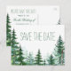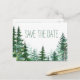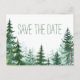 Tarjetas postales de guardar la fecha de boda de abeto con abetos rústicos de acuarela en un fondo de color elegido por usted. Puede agregar el texto que desee en el estilo de letra que prefiera.