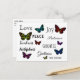 Esta caprichosa tarjeta postal de salvar la fecha presenta los frutos del Espíritu de Gálatas en la Biblia: amor, alegría, paz, paciencia, amabilidad, bondad, fidelidad, mansedumbre y dominio propio, en fuentes elegantes, intercalados con mariposas brillantes de varios colores. Una excelente tarjeta postal para cualquier evento eclesiástico o cristiano. Se puede utilizar para invitaciones o anuncios.