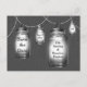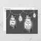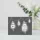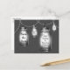Frascos mason rústicos colgando de cuerdas de luces centelleantes, sobre un fondo ilustrado de arpillera decoran este Aviso de bodas. Desplázate hacia abajo para ver la colección completa de bodas.