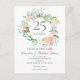 Con una delicada guirnalda floral de acuarela, esta elegante tarjeta de cambio de fecha de aniversario de bodas número 25 con temática botánica se puede personalizar con su información especial de aniversario de plata. El reverso presenta una guirnalda floral a juego que enmarca sus fechas de aniversario en texto blanco elegante sobre un fondo plateado. Diseñado por Thisisnotme©